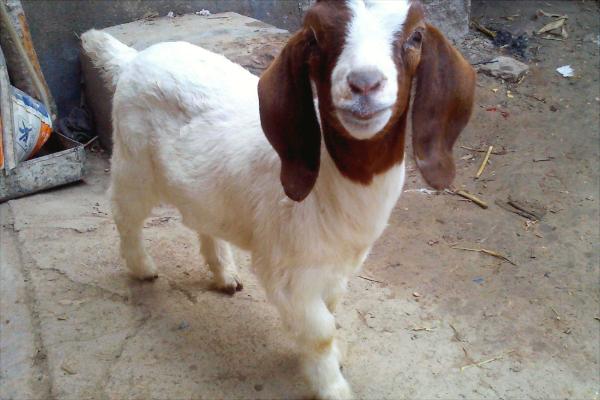 3.耳朵:纯种波尔山羊耳朵宽而长,全部下垂,颜色红褐;而杂交改良羊,耳朵比较宽且短,般不是从耳根开始下垂,而是距耳根2厘米处才下垂,颜色多为白色。