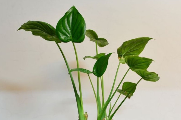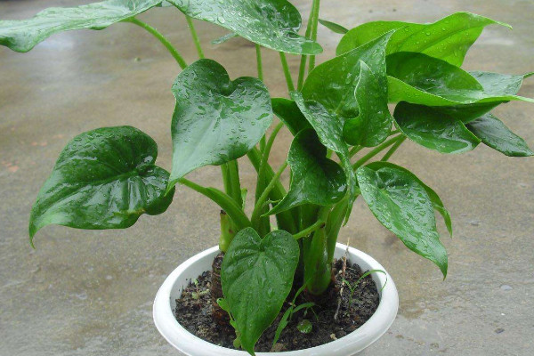 在家中摆放滴水观音时,可以在茎段上装饰红色吊坠或者捆扎红色丝带,避免植株的叶片向四周分散过疏,影响风水效果。