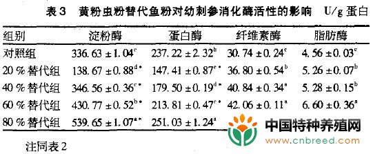 2、黄粉虫粉替代鱼粉对刺参消化酶活性的影响