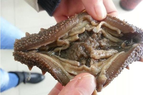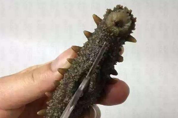 2、翻开海参肚子,假海参和人造海参肚子里面什么也没有。而真正的海参除了内脏,还有连接全身的海参筋。人造海参的弹性特别不好,特别是泡在水中,不但脱刺,而且还掉颜色。海参价格也是低的离谱,这也是关键之一。