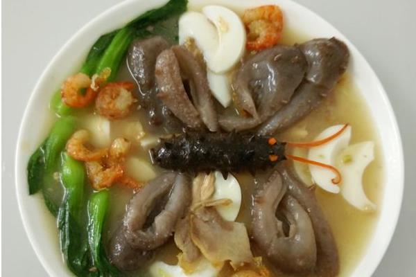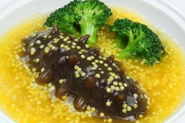 做法:将海参泡发,剖开腹部,挖去内肠,刮洗干净,切碎,加水煮烂;粳米淘洗干净,与海参一并放在沙锅内;加入清水,先用武火煮沸,再用文火煎熬20-30分钟,以米熟烂为度。