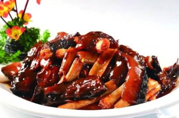 主料:水发海参,猪手,腐竹,菜心,油、姜、料酒、葱、盐、白糖、红枣、腐乳、香叶、桂皮、八角、酱油