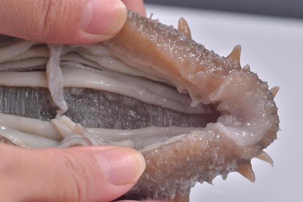 1、把鲜活的鲜海参买回家以后,一定要及时破腹取脏,否则海参会很快消瘦,甚至还会自溶为液体。方法很简单,就是剖开鲜海参的肚子,把肚子里面的肠胃等东西摘净,然后用洗水洗净,再摘除参嘴。