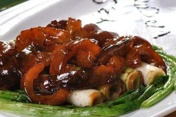 原料:水发刺参1千克、清汤、油菜心、料酒、湿玉米粉、熟猪油、葱120克、酱油、味精、食盐