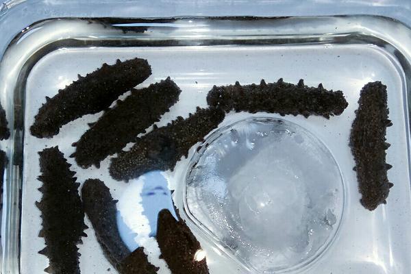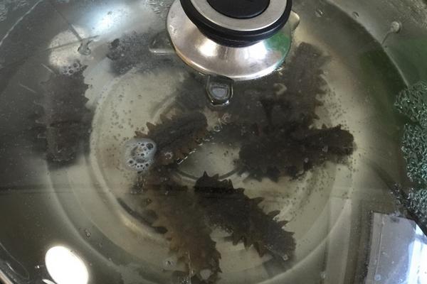 2、凉水泡。是为了把干海参泡软,常温下的纯净水或者矿泉水一起放到无油的器皿发泡24小时,每隔8小时换次水。