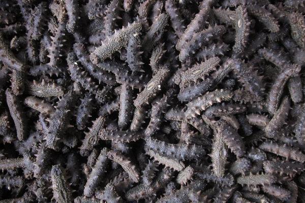 通体黑色的海参,经常被认为是高端刺参,这种说法实际上out了。刺参的颜色偏深,但实际上参杂着黄色、灰色、褐色。好海参不可能通体黑色,海参背面和腹面,海参的疣和管足都呈现不同的颜色。市面上从头到脚一片黑色的海参,实际上是添加了各种增色增重的杂质,消费者务必谨慎。