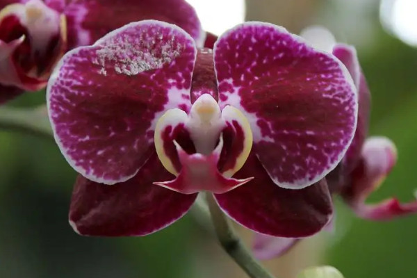 蝴蝶兰喜湿但不耐水涝,在养殖过程中,发现土壤变干时,就要立即为其补水,但不能出现积水,否则容易出现沤根情况,影响根系的正常呼吸,另外天气干燥炎热时,还需定期向叶片和周围喷水保湿。