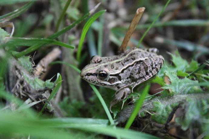 记者看到池子里前期投放的黑斑蛙,已经适应了生长环境,正在自由自在嬉戏跳跃。
