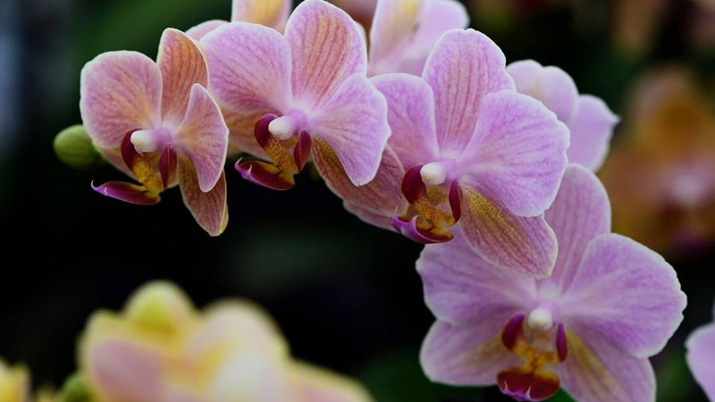 蝴蝶兰的浇水频次要根据四季变化、生长情况来决定,一般春秋两季每隔1-2天浇水一次,夏季干燥炎热,需要每天早晚各浇水一次,并定期向叶片和四周喷水保湿,而冬季气温较低,植株对水分的需求小,可以每隔5-7天浇一次水。