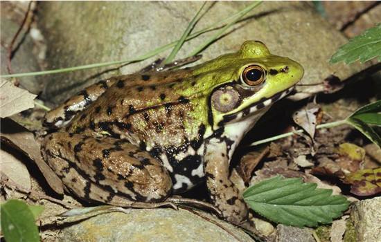 黑斑蛙:称黑斑侧褶蛙、属于脊索动物门、两栖纲、无尾目、蛙科、侧褶蛙属。