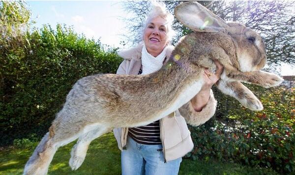 兔子大流士(Darius)已经被吉尼斯世界纪录认定为世界上最大的兔子,它体长1.22米,体重达45斤。每天要吃12根胡萝卜和其他大量食物,相当于每年吃掉4000美元(约合人民币24792元)(截止2015-05-30 18:30)。该兔子的主人称:大流士几乎吃光了我家。养一只世界最大的兔子真要付出不少的代价!