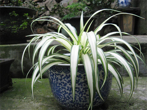 5、如果是喜欢花的人群可以选择养殖吊兰,因为吊兰在后期还会开出白色的花朵,观赏性较高。