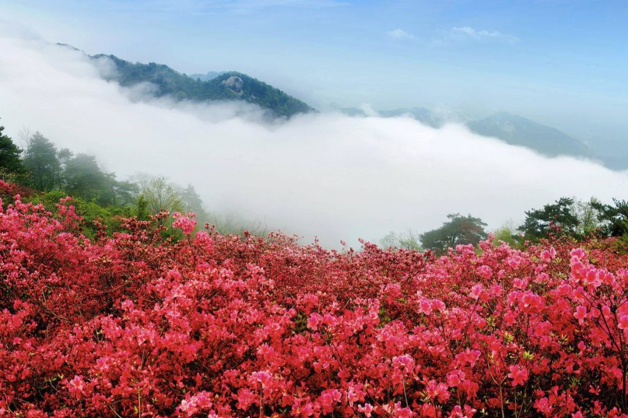 映山红通常在春季绽放,一般在3月至5月之间。花期会因地理位置和气候条件的不同而有所变化。