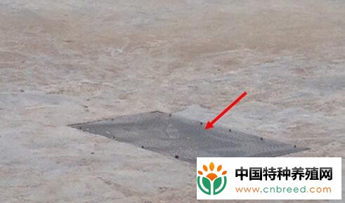 图6 中间排污口:一长方形网状铁板预防排污时虾逃跑,一天排污2~3次,依投喂量而定。