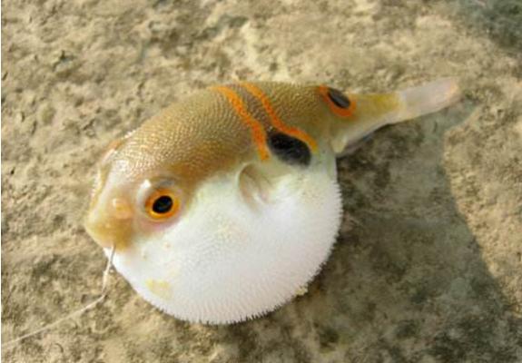 3、禁忌:河豚鱼的有毒成分是河豚毒素,它是一种神经毒,人食入豚毒0.5mg-3mg就能致死。河豚的肝、脾、肾、卵巢、睾丸、眼球、皮肤及血液均有毒。以卵、卵巢和肝脏最毒,肾、血液、眼睛和皮肤次之。毒素耐热,100℃8小时都不被破坏,120℃1小时才能破坏,盐腌、日晒亦均不能破坏毒素。