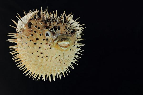 刺豚与淡水中的河豚鱼是一类,体内含有毒素,受惊鼓起身体象刺猬一样吓退敌人。