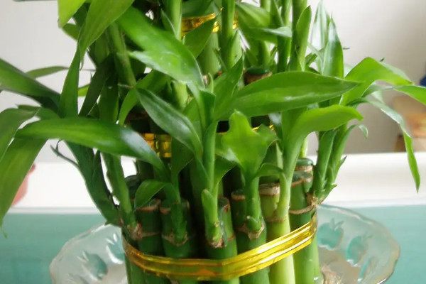 水养富贵竹时,最好放在光线明亮、通风的地方,每天上午接受散光照射,让枝叶进行光合作用,使颜色更加翠绿,长期在荫蔽环境中生长,或被强光照射,会导致叶片干枯发黄并掉落。