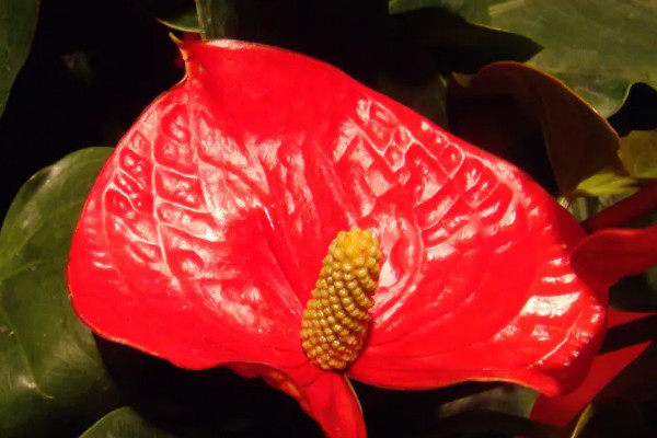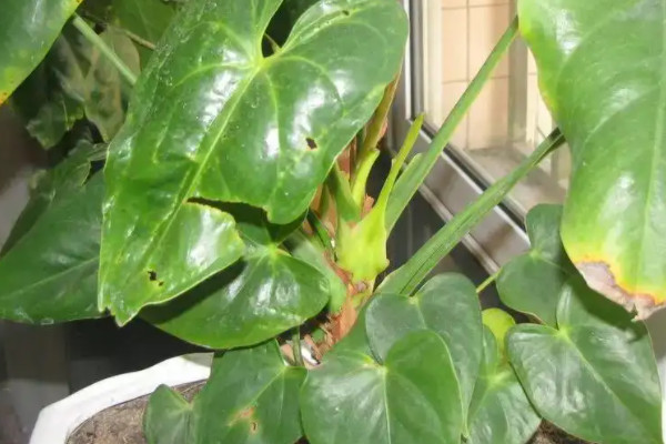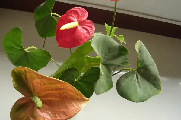 红掌属于喜阳植物,换盆后要为其提供充足、柔和的光照,一般放在向阳的窗台或阳台即可,避免强光暴晒,若将植株摆放在阴暗的环境下,阻碍叶片进行光合作用,红掌会因养分不足而萎蔫枯萎。