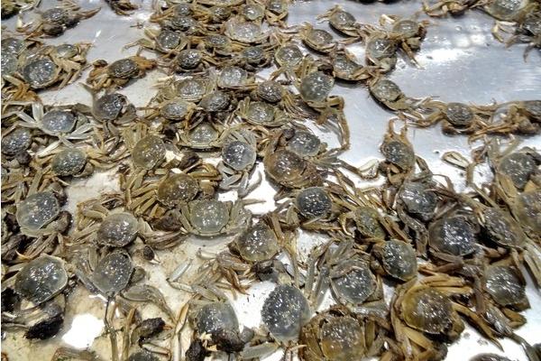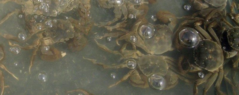 6、合理的控制放养密度,每亩可放500-800斤的性成熟河蟹,为了防止河蟹在岸边长时间的爬行,导致体力过度消耗和遭到日晒而死亡,因此可以直接把河蟹放入水中。