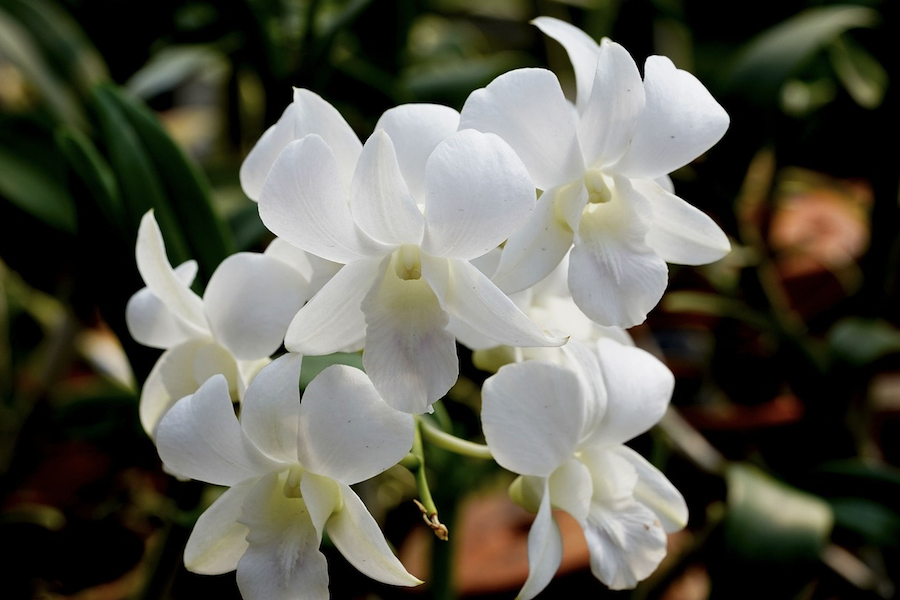 一些兰花品种具有芳香,可以通过闻花来判断花朵的品质。