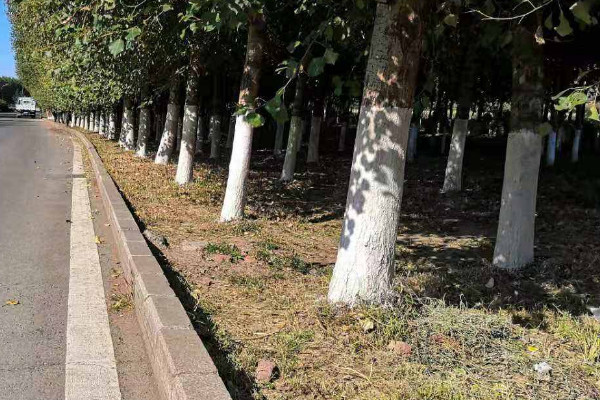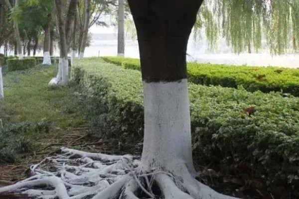 给树干刷白灰是为了植物在冬季能够安全越冬,起到保护树干的作用,而且白灰内含消毒灭菌的物质,将其涂抹在树干上,可以预防病虫、细菌的滋生,防止开春之后,病虫危害植物生长发育。