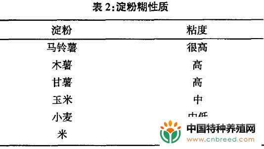 因鳗鱼饲料要投入水中喂食,要求预糊化淀粉具有较好的抗老化性。普通的预糊化淀粉容易老化,而且粘弹性不足,不适合在鳗鱼饲料中使用。本试验对普通的预糊化淀粉进行改进,通过化学反应进行变性处理,以提高产品的粘弹性。在特定的条件下,加入交联剂,经过交联反应后,在淀粉分子之间形成空间网状结构,淀粉分子吸水溶胀,与饲料其它成分相互穿插,对鱼粉等其它成分具有包容粘结性,从而形成了鳗料团特有的粘弹性等质构。交联后的淀粉在弹性方面得到了很大的提高,抗老化性增强,和鱼粉粘合成团时,在水中不易散失,不污染水质。