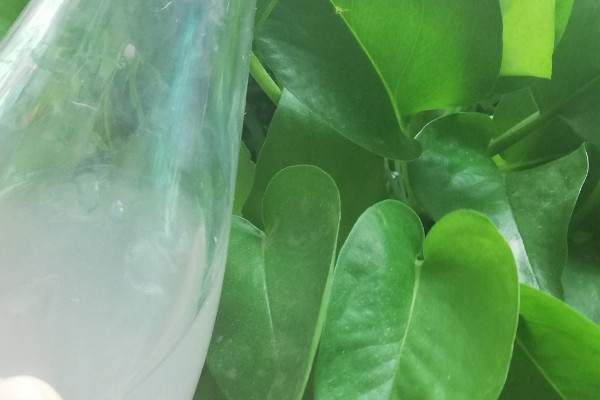 绿萝生长过于旺盛,擦拭叶面工作量过大时,可以将暴晒后的啤酒,按照1:30的比例加水稀释,装入洗净消毒的喷壶,对着叶片喷洒,每隔15天喷洒一次,为植株提供充足的营养。