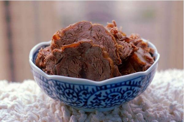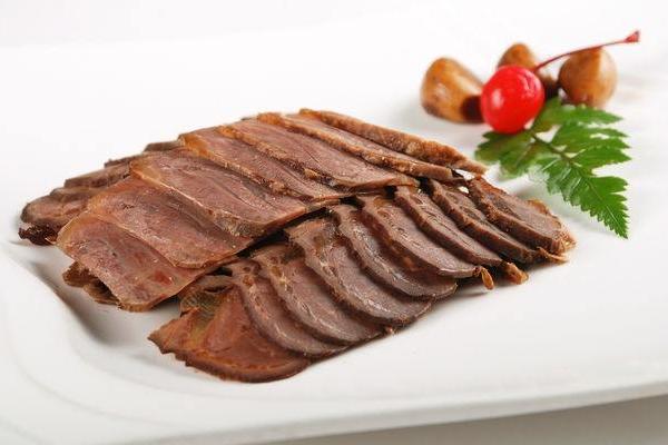 2、卤牛肉:指用卤的方法处理出来的牛肉,煮熟煮逶后,颜色棕黄,表面有光泽,无糊焦,不牙碜,酱香味浓,可口。卤牛肉有补中益气、滋养脾胃、强健筋骨、化痰息风、止渴止涎之功效,适宜于中气下隐、气短体虚、筋骨酸软、贫血久病及面黄目眩之人食用。