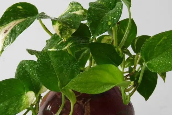 绿萝属于阴性藤本植物,喜欢温暖、湿润的环境,能耐阴但不耐阳光直射,土培栽种时,最好在腐殖质丰富、土质疏松的微酸土壤种植,水培时定期换水,保证水质的干净清洁。