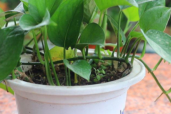绿萝扦插后至少养护10天,土壤和空气湿度保持在80%,等待恢复正常生长即可增加散光照射,每天上午接受3-4小时散光,每隔15天喷施一次无机肥,提供充足的养分,促使植株旺盛生长。