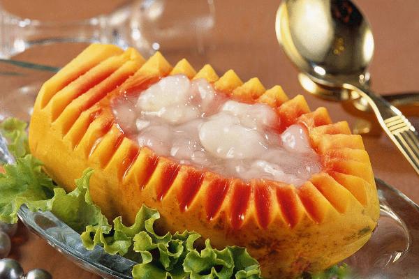 食材:木瓜一个(约一斤半重),林蛙油(雪蛤油)2到3克,鲜奶一杯,水一杯,冰糖适量(减肥者可不用)。