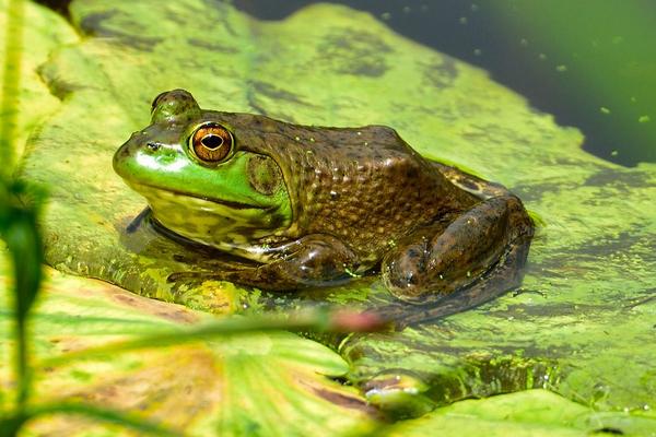 从古巴引入的牛蛙可算是蛙中的巨人,体长可达20厘米。它那哞哞的鸣声很像牛叫,所以叫牛蛙。