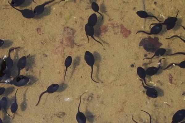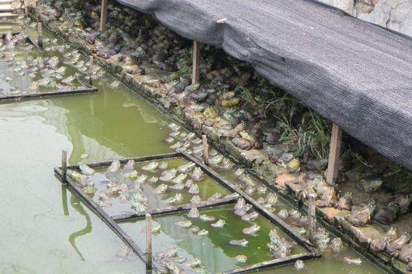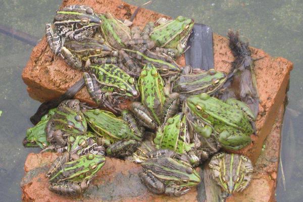 放养:食用青蛙人工饲养必须从人工采卵后养育孵化,出膜后的蝌蚪在原孵化池或网箱中培育,每平方米水面放养600~800尾。蝌蚪孵出后第4天开始人工投饵,蝌蚪需经一周饲养后移入饲养池。