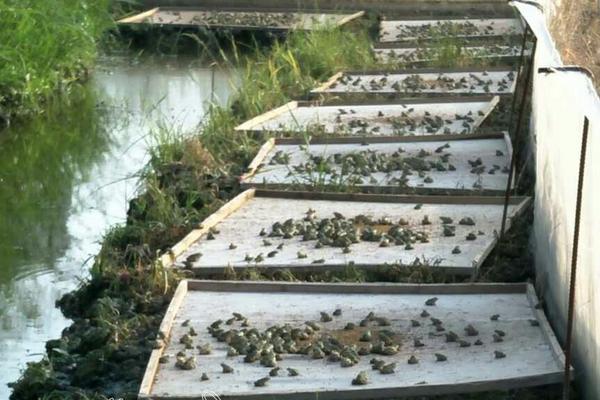 1、把种蛙池子里的食台取了,洗干净放在塘边,第二年可再反复用。食台取了的目的也是让青蛙能找到更多的地方打洞,只要青蛙能在11月份前钻洞里去,就基本没有大问题。