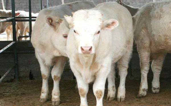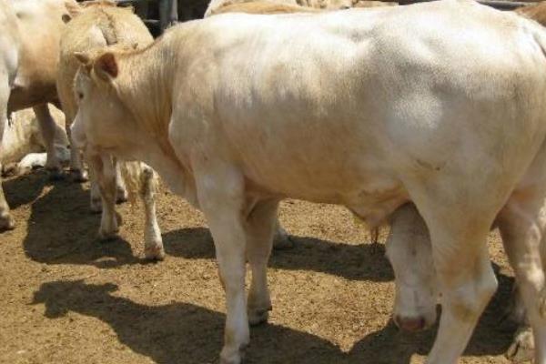 2、优点:该牛最显著的特点是被毛为白色或乳白色,皮肤常有色斑;全身肌肉特别发达;骨骼结实,四肢强壮。 夏洛莱牛头小而宽,角圆而较长,并向前方伸展,角质蜡黄、颈粗短,胸宽深,肋骨方圆,背宽肉厚,体躯呈圆筒状,肌肉丰满,后臀肌肉很发达,并向后和侧面突出,常形成双肌特征。成年活重,公牛平均为1100至1200千克, 母牛700800千克。初生公犊重45kg,母犊42kg。