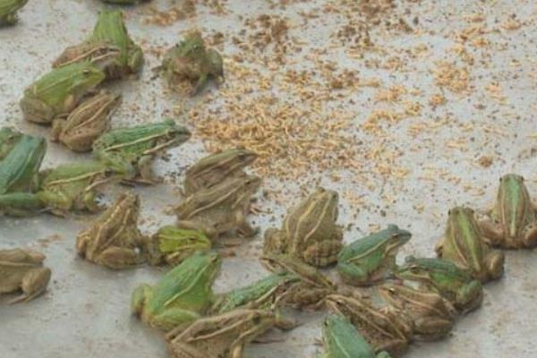 为了既可满足人们生活的需要,又可以保护野生青蛙资源,人们开始着手人工繁殖、养殖野生青蛙。但现有的野生青蛙繁育养殖技术仍然存在着单位面积产量不高、养殖成商品蛙周期长、养殖成本高、不易大面积推广、难形成规模养殖等问题,造成人工养殖困难,野生青蛙资源仍然受到严重的破坏。