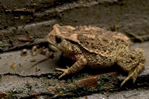 3、小棘蛙:小棘蛙属三有保护动物,体大而肥壮,体长约有9~12厘米,体色较为暗淡,杂以不规则的黑色斑纹,我国的特有物种,分布于福建、湖南、广西等地。