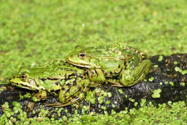 青蛙的饲养技术关键是人工繁殖,因为野生田蛙常有一种双槽蚴的寄生虫寄生在蛙的肌肉中,采用人工产卵隔离成蛙的方法可以有效地防止该病。按每3平方米约1组种蛙密度进行投种(在5月份以前投入较好)。种蛙要求个体肥大,开产1~2年的亲蛙为佳。雌雄混合放养比例为3:1,放养密度相对比肉蛙少。由幼蛙到性成熟大约需时三年。种蛙管理:加强蛋白饲料的饲喂,以蚯蚓为主,诱蛾虫为辅。保持池水的正常平衡值,要求肥而活。当水温稳定在22℃左右时即作好产卵孵化的准备( 此时雄蛙鸣叫不停)。50克以上的雌蛙一次可产卵很多。一般雌雄抱对于水草上产卵。蛙卵呈浅黄色,圆形,成片附于胶质卵膜浮在水草上,极易识别。1、产卵:人造产卵场需要静水区,一般采用笼式产卵法,即将蛙强制在箩筐或笼子里产卵。雌雄蛙以1∶1的比例,20平方米的产卵也可放5个产卵筐或笼,池水深度应保持在10~15厘米,水温应保持在10℃~11℃,为了使孵化率提高,可将卵片用围网护起来,以免亲蛙干扰后下沉。2、孵化:蛙受精卵在孵化期间的温度应保持在20℃~28℃,主要是自然孵化;也可采用塑料薄膜覆盖孵化法和无水孵化法。一般经过3~5天即可全部孵化蝌蚪。初生蝌蚪依赖于卵膜才安全生存,不要随便搅动池水,待所有青蛙产卵后,即将青蛙抓出池,以免干扰孵化及蝌蚪生存环境。卵孵化5天后可供给精饲料,如豆浆、蛋黄、水蚤及水中浮游生物,每天喂给2次,但投饵数量不宜太多,以免水质恶化,引起蝌蚪死亡。蝌蚪经1周饲养后即可移入饲养池饲养。