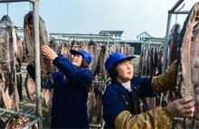 1月8日,王江泾镇一个青鱼合作社的加工厂内工作人员在晾晒青鱼,销售旺季该加工厂一天能出厂1000多条青鱼干。