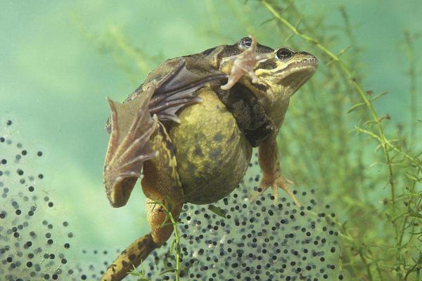 林蛙与其他蛙类生活习性有所不同,它的年生活周期可分为水生生活期和陆生生活期两个不同的阶段。水生生活期是潜藏在较深的水体中进入冬眠状态,以躲避寒冷冬季,度过休眠期。