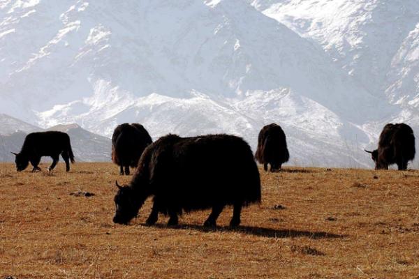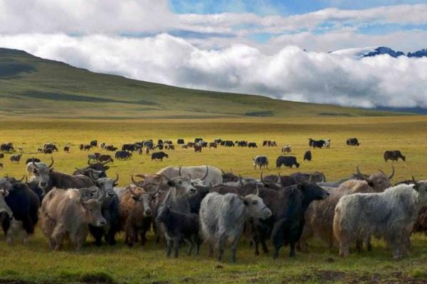 牦牛是高寒地区的特有牛种,草食性反刍家畜。牦牛是世界上生活在海拔最高处的哺乳动物。主要产于中国青藏高原海拔3000米以上地区。适应高寒生态条件,耐粗、耐劳,善走陡坡险路、雪山沼泽,能游渡江河激流,有高原之舟之称。牦牛全身都是宝。藏族人民衣食住行烧耕都离不开它。人们喝牦牛奶,吃牦牛肉,烧牦牛粪。它的毛可做衣服或帐篷,皮是制革的好材料。它既可用于农耕,又可在高原作运输工具。牦牛还有识途的本领,善走险路和沼泽地,并能避开陷阱择路而行,可作旅游者的前导。
