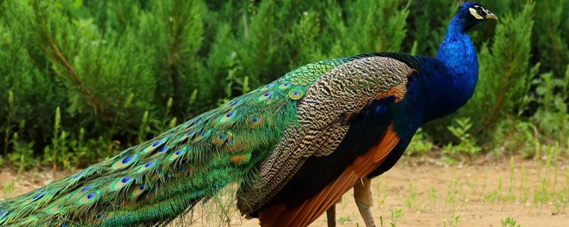 回答雄鸟眼睛上方和下方都有一条白色的斑纹,头顶、颈部以及胸部为蓝色,翅膀上的覆羽为黑褐色,飞羽黄褐色,腹部深绿色或者黑色,尾上的覆羽形成尾屏。雌鸟头顶和颈的上部..